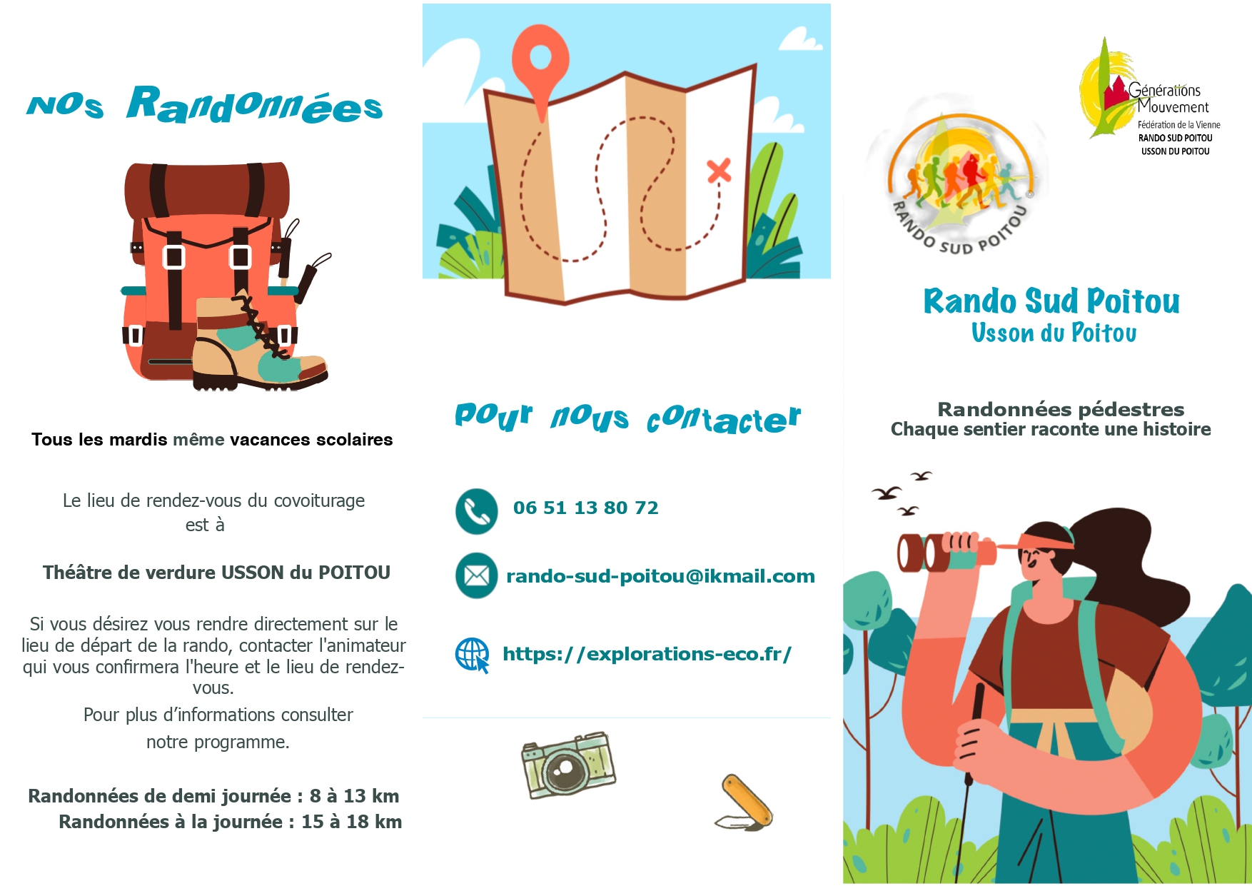 Ça va marcher, randonner, dans la nouvelle association qui rejoint GM86 : Rando Sud Poitou à USSON DU POITOU ! tout est dans les flyers ci-dessous.