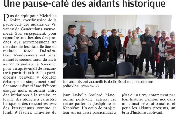 Une pause café des aidants historique , vu dans le journal "La Nouvelle République"