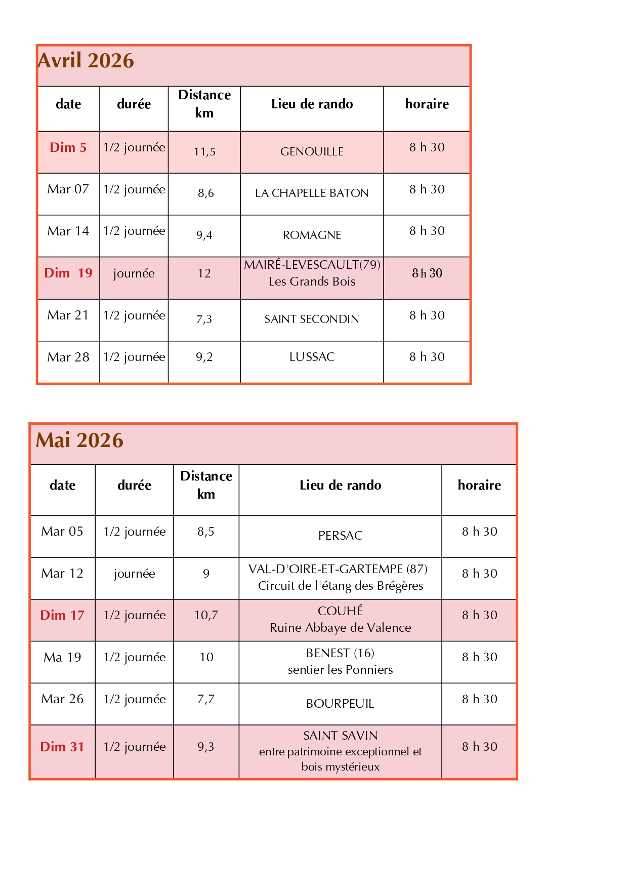 Comme toujours, ces sorties seront l’occasion de partager des moments conviviaux, de découvrir de nouveaux paysages et de profiter pleinement de la nature, que ce soit lors de randonnées à la demi-journée ou à la journée.