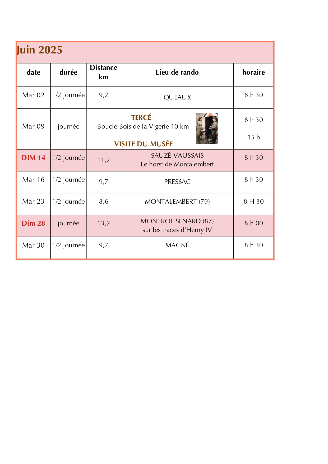 Nous espérons vous retrouver nombreux pour ces belles sorties printanières.